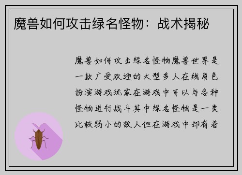 阅读魔兽如何查看承受伤害详情 魔兽世界是一款备受玩家喜爱的大型多人在线角色扮演游戏。在游戏中,玩家扮演着各种职业的角色,与其他玩家或怪物进行战斗。在战斗过程中,了解自己承受的伤害详情对于玩家来说非常重要。...